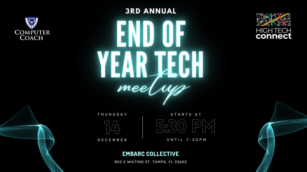 Join us for the 3rd Annual End of Year Tech Meetup, where local Meetup groups from across Tampa Bay will gather to celebrate this past year’s successes!